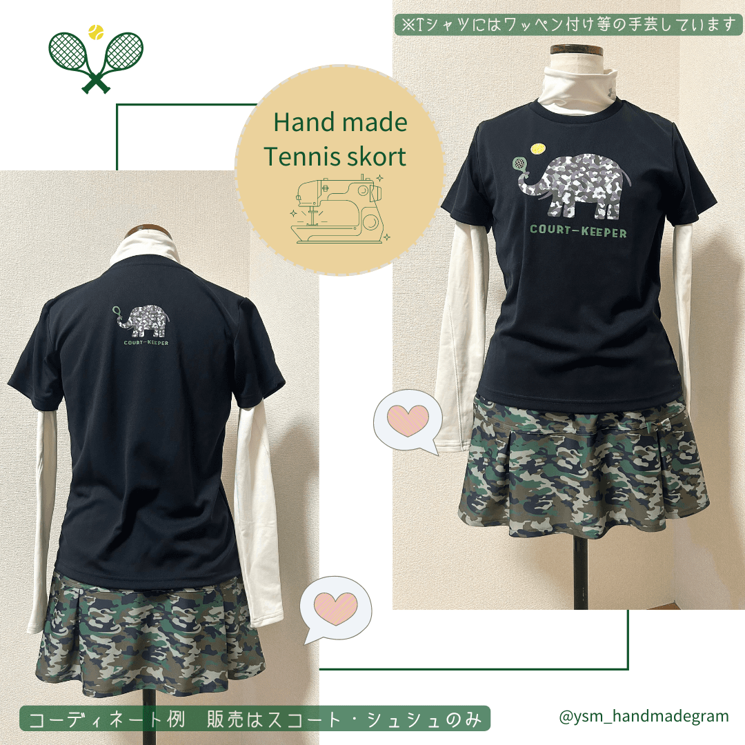 ウサギ迷彩柄52 テニススコート 両サイドポケ付き ゴルフ